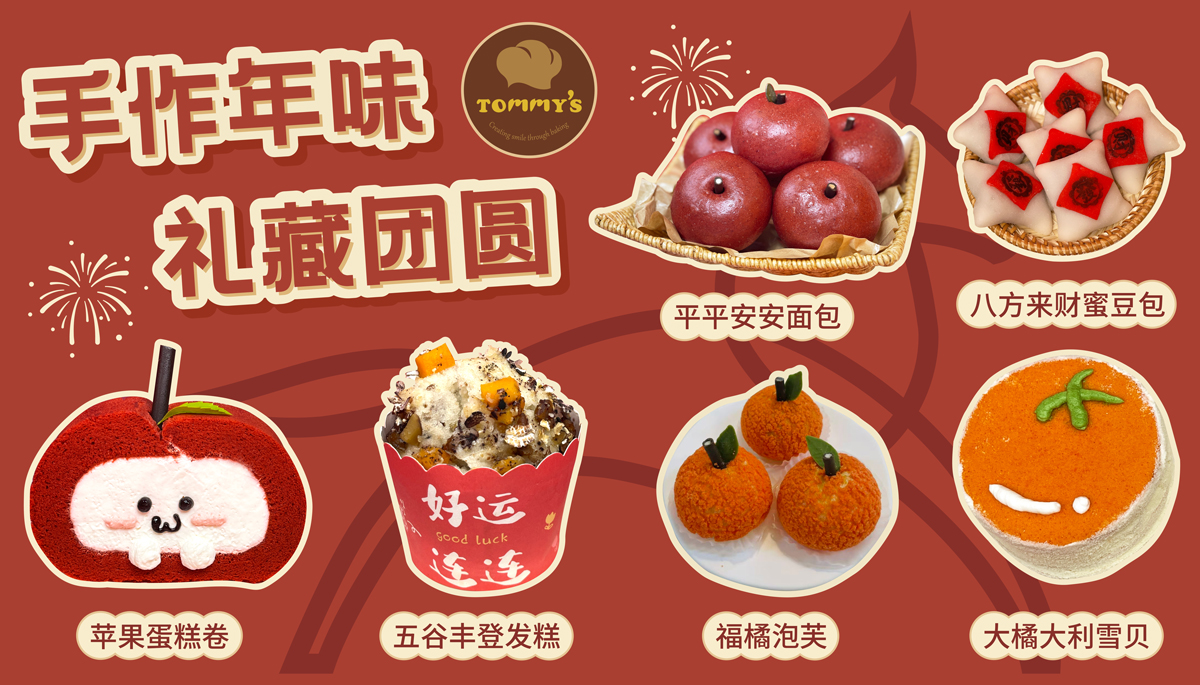 新春伊始,万象更新,春节可谓是一场家庭团聚、美满的狂欢盛宴,这一次Tommy's将打造传统年俗与烘焙美食结合,通过DIY创意甜品食谱分享,让年味更浓,让新春送礼更走心,也让大家感受到烘焙带来的愉悦与幸福感。
